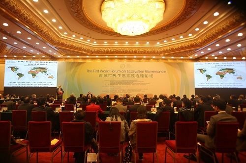 2015年 10月23日至28日,由世界自然保护联盟(IUCN)、国家林业局、北京市人民政府和亚太森林组织(APFnet)共同主办,我会负责承办的“首届世界生态系统治理论坛”在北京召开。本次论坛分为青年领袖学院研讨会、开幕式、技术研讨会和闭幕式四个阶段,来自全球50多个国家的300多位生态系统治理领域的专家学者、政府代表、国内外非政府组织代表、私营部门代表及青年领袖共聚一堂,共同探讨生态系统治理这个全球性问题,为生态系统治理和可持续发展议题献计献策。