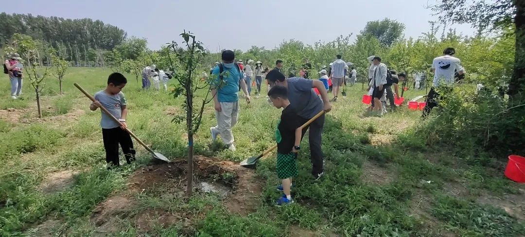 在观鸟之余,讲师们还带大家观察了在这里生息繁衍的麋鹿家族。大家不仅见到了状态健康的麋鹿宝宝,也对麋鹿保护以及它们与湿地环境的关系进行讨论。北京市延庆区自然保护地管理处党组成员刘雪梅副主任及工作人员为大家讲解了树木保护和“候鸟粮田”的管理工作,大家还进行了有趣的管护体验。
