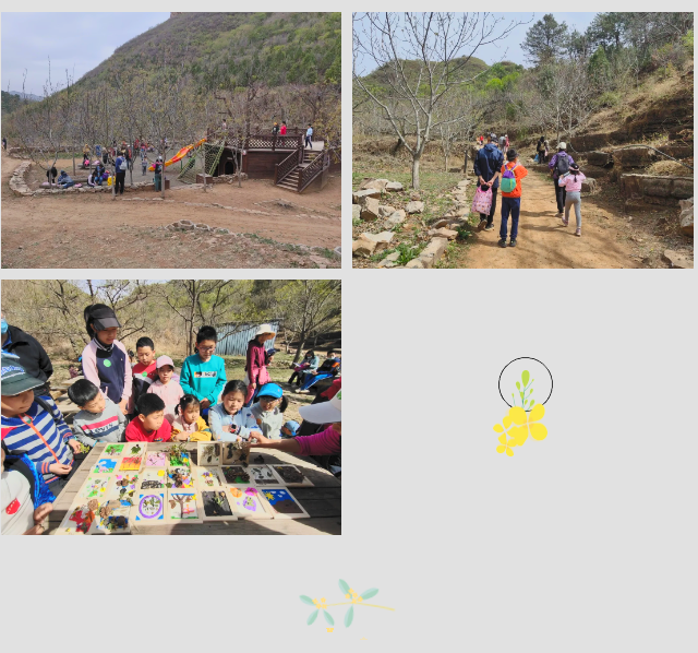 短暂的休息后,下午的活动更加丰富有趣。自然解说老师带领大家深入长峪沟自然休养林,在漫步山野的过程中观察身边的一草一木、一花一果,小朋友们在“柿子乐园”里玩得不亦乐乎,更通过自己的观察找到了不少大自然巧夺天工的创意:牡丹残留的奇怪蓇葖、萝藦带着绒毛的种子、蒲公英绽放的金黄花朵……小朋友们将这些“珍宝”收集起来,发挥创意做成一幅幅自然拼贴画,在收获快乐的同时,也锻炼了观察能力、动手能力与创造能力,而他们灿烂的笑脸和亲手创造的那一幅幅充满奇思妙想的作品,更成为了本次活动中最为亮眼,也最弥足珍贵的美好记忆。