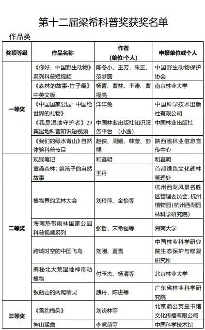 据悉,中国林学会于2023年8月启动了第十二届梁希科普奖评选工作。评选期间,共收到149项符合相关要求的申报材料,包括科普作品类75项、科普活动类47项、科普人物类27项。