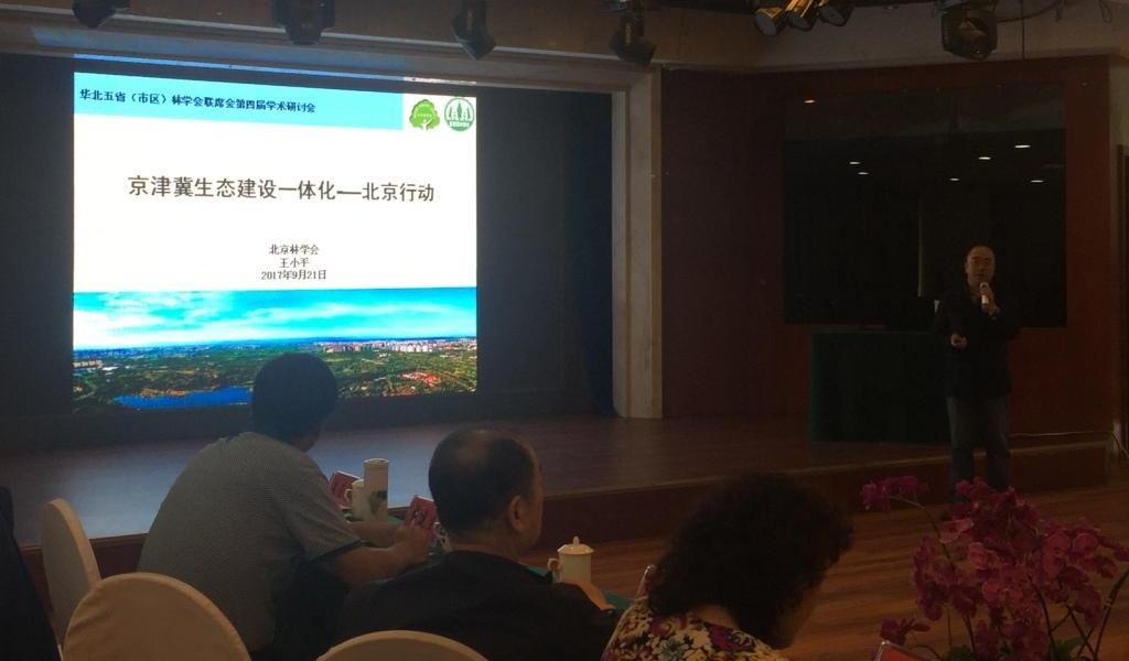 我会王小平副理事长就“京津冀生态建设一体化——北京行动”作了主题演讲, 分析了习近平总书记提出的“京津冀生态一体化发展”和《京津冀协同发展规划纲要》大背景下北京采取的行动,并提出“按照京津冀协同发展规划纲要、京津冀协同发展生态率先突破框架协议和本市推进京津冀协同发展的工作部署,立足三地实际,按照优势互补、互利共赢、区域一体、共建共享的原则,加强顶层设计,创新体制机制,不断深化林业建设领域全方位合作,共同构建一体化发展的环首都生态圈,不断扩大环境容量和生态空间,构建与国际一流和谐宜居之都相适应的京津冀世界级城市群生态格局”。